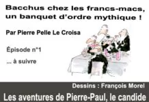 Texte de Pierre Pelle Le Croisa – Illustrations de François Morel. « À la face rubiconde,Consultez-vous un buveur ?Il vous dira qu’en ce mondeBacchus seul fait le bonheur.Sans approuver son ivresse,Je trouve aussi le vin bon,Quand on boit avec sagesseÀ la santé d’un Franc-Maçon. » Incipit, tiré de : « Le bonheur » par le R :. F :. Lesne (1799), des « Amis … Lire la suite de Bacchus chez les francs-macs, un banquet d’ordre mythique ! (Épisode n° 1)