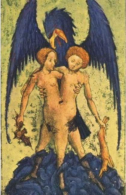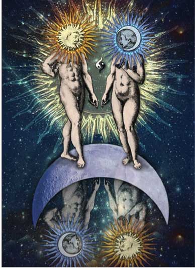 L’anima chez l’homme et l’animus chez la femme se sont ainsi dévoilés peu à peu tout en s’intégrant véritablement en conscience, métamorphosant symboliquement les hommes et les femmes qui le souhaitent en êtres doubles symboliquement androgynes, désormais aptes à jouir des prérogatives des êtres spirituels qui se laissent pousser des ailes et sont aspirés avec délice en leur propre dimension cosmique. Cet état d’esprit androgyne annonce le dépassement définitif du modèle patriarcal, la réintégration du principe féminin, et la restauration d’une totalité spirituelle d’essence à la fois humaine et divine.
