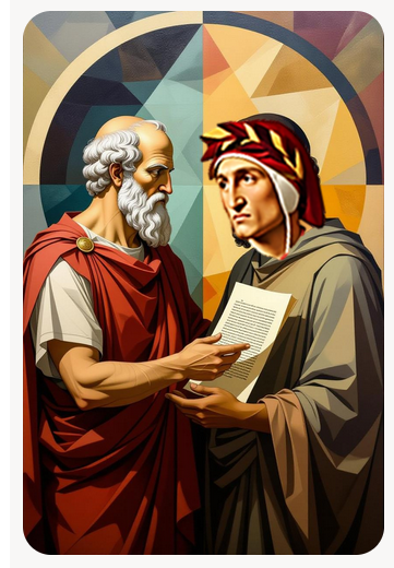 Dante : La vertu ? J’en ai décrit des tonnes dans mes cercles : la justice divine qui punit les vices avec une logique implacable ! Mais l’air ici ? je sens le vent de maçon d’est en ouest, avec une odeur de vieux papyrus moisi et de sueur philosophique. Si c’est pour tester mon intellect, posez-moi une énigme – mais ne me faites pas respirer cet air chargé d’idées antiques !