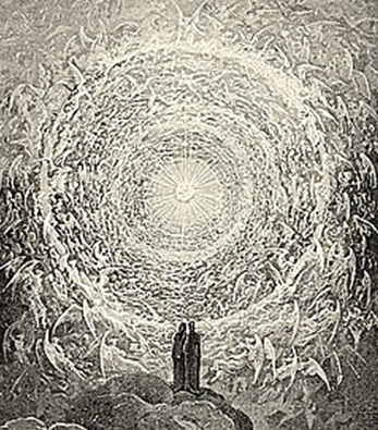 Platon : Et mes Idées éternelles guident tout ! Remarque comme la quadrature du cercle de la voûte et du pavé pousse vers la perfection. Et ta Béatrice, c’est la Sagesse, comme tes vertus théologales : foi, espérance, charité.