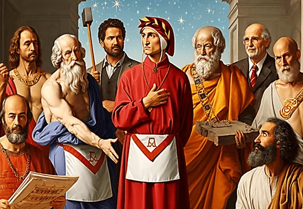 Dante : Par les neuf cercles de l’Enfer et les sept terrasses du Purgatoire ! Où diable suis-je tombé ? J’étais tranquillement en train de polir les rimes de ma Divine Comédie, rêvant de Béatrice et de paradis étoilés, et voilà que je me retrouve dans ce… ce carnaval philosophique déguisé en loge secrète ! Béatrice m’avait pourtant averti dans une vision : « Évite les rassemblements de barbus en tabliers, Dante, ils transforment les poètes en apprentis maçons ! » Et ce tablier blanc ? On dirait un bavoir pour un géant affamé de symboles ésotériques. Est-ce une initiation ou une farce florentine orchestrée par mes ennemis guelfes ?