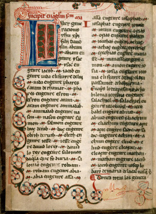 Évangile traduit par John Wyclif, copie de la fin du XIVe siècle, folio 2v de MS Hunter 191 (T.8.21).