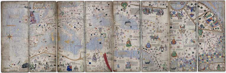 Les six parchemins constituant l’Atlas Catalan, de 1375, attribué aux Cresques