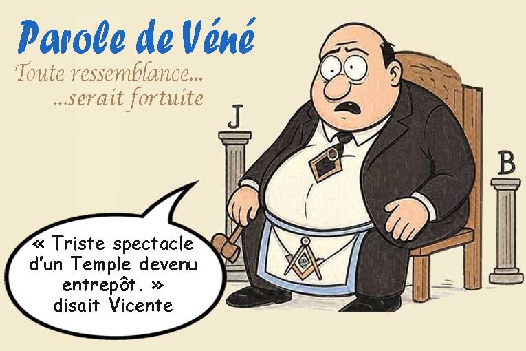 Vicente, lecteur perspicace, soupire : « Triste spectacle d’un temple devenu entrepôt. » Nos ateliers, censés polir des âmes, se muent en dépôts de matériaux ? En vénérable cynique, j’imagine un maître traçant des appels d’offres au lieu de chemins spirituels, transformant le GADU en Grand Architecte des Deals Urbains. Triste, oui, comme un banquet sans vin, juste du vinaigre fiscal !