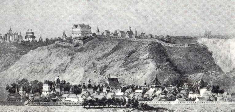 Vue de la ville de Kiev en 1651: la ville basse de Podil ramassée aux pieds de la colline.