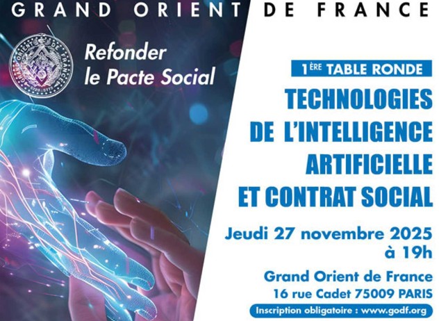 Tout au long de son discours d’installation, Pierre Bertinotti, Grand Maître, a donné la boussole : refonder le pacte social dans un monde en déséquilibre. Le Grand Orient de France en fait aussitôt un terrain d’étude vivant en ouvrant, jeudi 27 novembre 2025 à 19 h, le cycle « Refonder le pacte social » par une première table ronde consacrée aux Technologies de l’Intelligence Artificielle et au Contrat social, à l’Hôtel du GODF, 16 rue Cadet (Paris 9ᵉ).