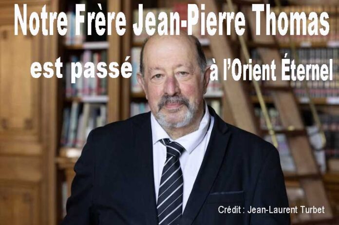 Il est des vies qui, dans la discrétion, construisent un Temple invisible… Pierre après pierre, mot après mot, toujours au service du sens. Jean-Pierre Thomas fut de ceux-là. Initié en 1983 au sein de la Respectable Loge La Justice n°133, devenu Maître deux ans plus tard, il fut aussi membre de la Loge Albert Lantoine n°1582, inscrivant son parcours dans la lignée de ces Maçons de plume et de cœur pour qui la quête initiatique s’accomplit dans la transmission. Ancien Grand Officier à la Culture de la Grande Loge de France (Histoire & Patrimoine), il sut faire dialoguer érudition et mémoire vivante.