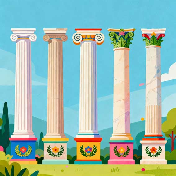 Dorique, Ionique, Corinthien, Toscan, Composite.
