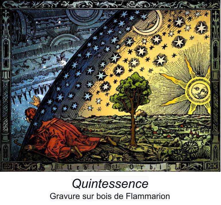 Restons donc dans l’univers de la matière que nous connaissons, c’est là qu’il faut chercher le cinquième élément puisque c’est là qu’il a été conçu. Aristote le définit comme l’éther, une sorte de bain ambiant qui entoure le cosmos, c’est la partie immuable de l’univers dans lequel tout le reste circule. On n’est pas loin d’énergie sombre.