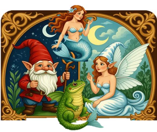 Les Esprits des Eaux (Vouivre, ondin et ondine, triton, sirelle, nymphe, néréide, sirène, fée de l’eau)Les Esprits de l’Air (Ryel, sylphe, sylphide, elfe, vestale, licorne, fée de l’air) Les Esprits du Feu (feu-follet, fée du feu, Salamandre)