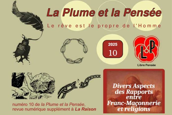 LA PLUME ET LA PENSÉE – revue maçonnique de la Libre Pensée – consacre son n°10 à un thème incandescent, « Franc Maçonnerie et Religions », dans le cadre de La Plume la Pensée, supplément numérique à La Raison, mensuel de la Fédération nationale de la Libre Pensée. Entre critique des dogmes et exigence de laïcité, cette publication se présente comme un laboratoire où la pensée maçonnique affronte sans détour les puissances religieuses et leurs ombres.