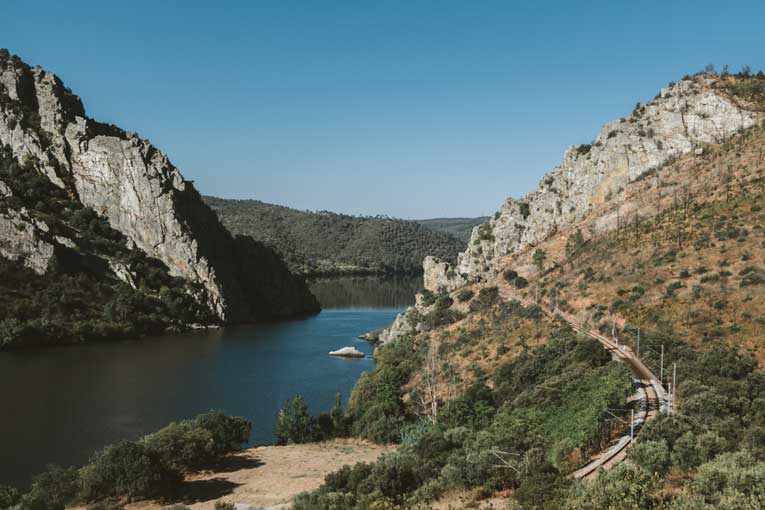 À proximité, le Centre d’Interprétation Templier d’Almourol (CITA) offre des expositions interactives sur la vie des chevaliers. Poursuivez à Dornes (Ferreira do Zêzere), où une tour pentagonale du XIIIe siècle veille sur la lagune de Castelo de Bode – un spot idéal pour une croisière au coucher du soleil. À Abrantes, la forteresse du XIIe siècle défendait la ligne du Tage, tandis qu’à Ourém, le château médiéval et ses ruelles pavées invitent à déguster une ginjinha, liqueur locale aux cerises.