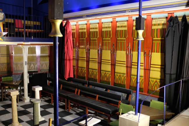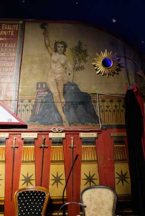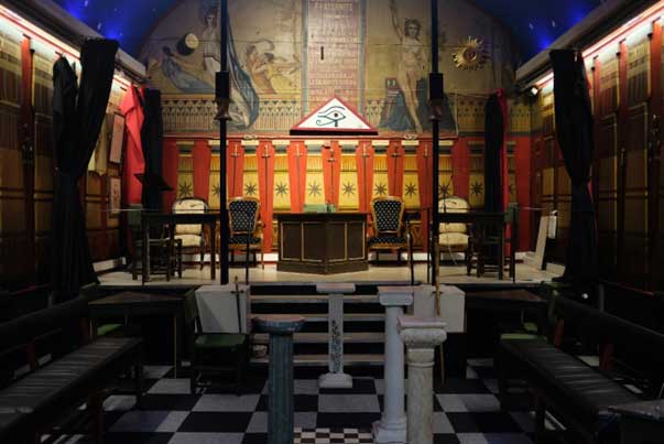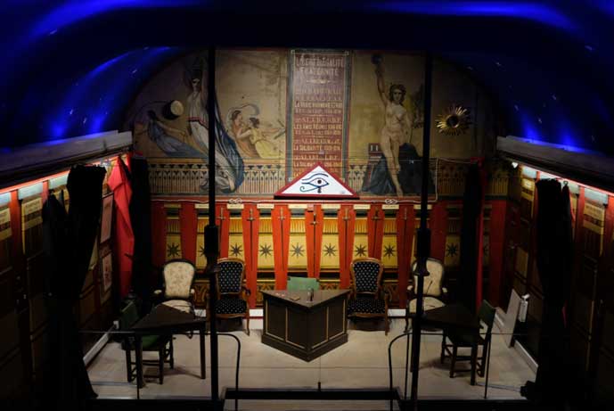 Son rite et ses rituels, très largement égyptophiles, avaient été inspirés par la campagne d’Égypte de Bonaparte. C’est la raison pour laquelle les décors de notre Temple sont totalement inspirés par l’Égypte pharaonique telle qu’envisagée et comprise à l’époque de Champollion. Ces décors ont été créés entre juillet 1891 et début 1892.