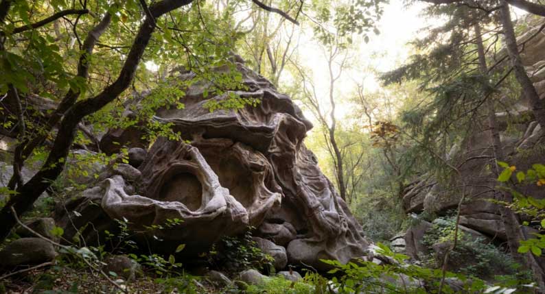 Le monstre, lui, n’a pas la noblesse flamboyante des dragons de vitrail ni la brutalité franche des ogres de veillée. Il est décrit comme un escargot hypertrophié, parfois traversé d’une nervure serpentine, et doté de tentacules si vastes qu’ils deviennent presque un paysage. Il n’a pas besoin de se montrer : sa présence se lit dans l’idée même d’un bras qui surgit du noir, agrippe le passant, le tire vers la bouche de la terre. La grotte devient un organe. Le tuc cesse d’être seulement un promontoire : il prend le pouvoir d’une bouche qui respire lentement.