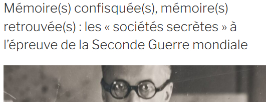 « Mémoire(s) confisquée(s), mémoire(s) retrouvée(s) : les « sociétés secrètes » à l’épreuve de la Seconde Guerre mondiale »