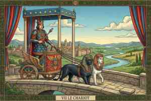 Le Rappel de l’Aventure : Du Bateleur à l’Amoureux Bienvenue, voyageurs. Pour ceux qui nous rejoignent, rappelons la règle : ici, vous n’êtes pas spectateur, vous incarnez le Tarot. Vous avez parcouru un sacré chemin du Bateleur au Pape, accumulant les outils, la connaissance et la bénédiction spirituelle. La semaine dernière, avec L’Amoureux (VI), vous avez vécu … Lire la suite de Arcane VII : Le Chariot – Le triomphe du Maître