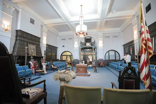 Le site du Savannah Morning News a publié dimanche dernier une série de photos de l’intérieur du bâtiment et de la salle de la loge maçonnique, prises par le photographe Richard Burkhart. La plupart des habitants du quartier n’ont jamais visité l’ancien bâtiment de la Bourse du coton, et encore moins une loge maçonnique. L’événement attire donc de nombreux lecteurs curieux, impatients d’y jeter un coup d’œil. Cliquez sur les images ci-dessous pour les agrandir.