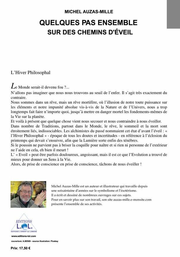 Michel Auzas-Mille – Éditions L.O.L., coll. Mystères Initiatiques, 2025, 238 pages,  17,50 € – numérique 5 € / Lire l’échantillon