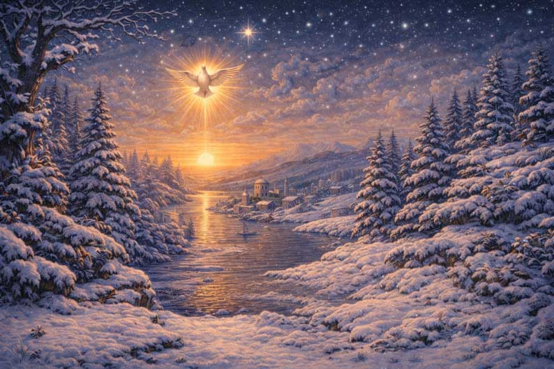 Elle invite à éprouver, au cœur même de la saison sombre, une vérité initiatique très ancienne : la lumière ne triomphe jamais par bruit, elle recommence par infime déplacement. À l’heure où le soleil, “au plus bas”, amorce sa remontée sur l’écliptique, la tradition place une figure de parole et d’amour au bord de la nuit, comme une lampe tenue à hauteur de visage.