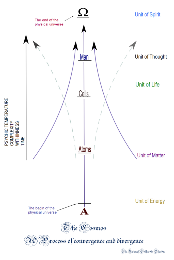 Le lecteur averti reconnaîtra des motifs chers à la tradition hermétique. La Terre, le Feu, l’Eau, l’Air reçoivent une rumeur nouvelle quand Pierre Teilhard de Chardin parle de la matière qui se spiritualise. Ces éléments ne sont plus des blocs. Ils deviennent étapes d’un transitus. Transitus signifiant l’action de franchir un passage, d’aller plus loin