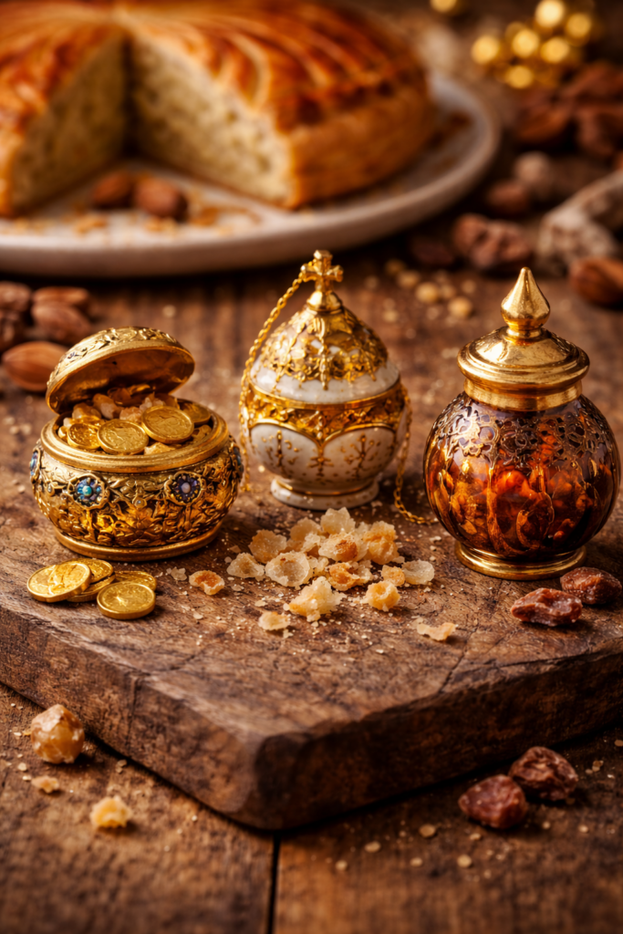 Et voici que la tradition populaire prolonge cette méditation dans un rite de table : la galette des rois. On pourrait n’y voir qu’un dessert de saison. Ce serait passer à côté de sa vérité symbolique. La galette, circulaire, rappelle la roue du temps et le cycle des recommencements. Elle revient chaque année comme une invitation à relire notre place : qui sommes-nous dans le cercle des vivants, et de quelle royauté intérieure sommes-nous responsables ? La pâte feuilletée, avec ses couches superposées, évoque nos strates d’existence : le visible et l’invisible, l’acquis et le latent, la mémoire et l’espérance. On n’entre pas dans la profondeur d’un être d’un seul coup ; on la découvre en feuilles, en plis, en patiences. Et l’or de la galette — sa couleur, sa chaleur — est comme une miniature de lumière posée au milieu de la table : un soleil domestique, une promesse de clarté au cœur de l’hiver.