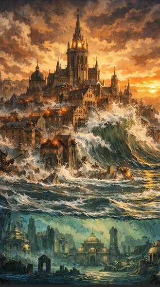 Ys n’est pas dissoute parce qu’elle serait « trop riche ». Elle se défait parce qu’elle a confondu l’or et la lumière. Elle a pris l’abondance pour une initiation, le vertige pour une élévation, l’excès pour une liberté. Elle a bâti sur le sable – non le sable géologique, mais le sable moral, celui qui ne supporte pas le poids d’un monde. Et dans ce sable-là, même les plus belles pierres s’enfoncent.