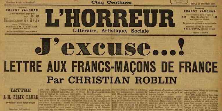 [1] Le titre de cet édito n’est guère plus qu’un clin d’œil lié aux circonstances.  Son thème résulte d’un défi qui me fut lancé en conférence de Rédaction, à partir d’un imprudent jeu de mots dont je suis l’auteur et qui a donné le titre de cette chronique, et ce, comme il est aisé de l’imaginer, à l’occasion du 128e anniversaire de la célèbre tribune d’Émile Zola – à la suite de quoi un esprit malin fit circuler entre nous l’audacieux pastiche de une qui figure en tête du présent article. Il est vrai que ce type de provocation, un peu facile et partant médiocre, correspond assez peu à ma pente (tout du moins, à l’écrit) et ce n’est pas sans violence que j’y ai fait succomber ma plume… utilisant même le titre avec une petite morsure d’ironie, comme on le voit à la fin de ce « papier ».