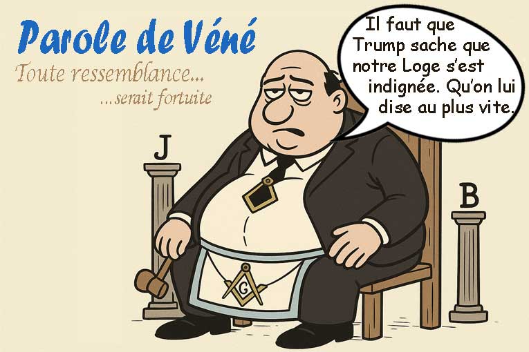 Que le Président Trump – ou son fantôme politique, vu qu’on est en 2026 et qu’il doit encore tweeter depuis Mar-a-Lago – sache que notre Loge s’indigne profondément de cette manifestation de force antidémocratique.