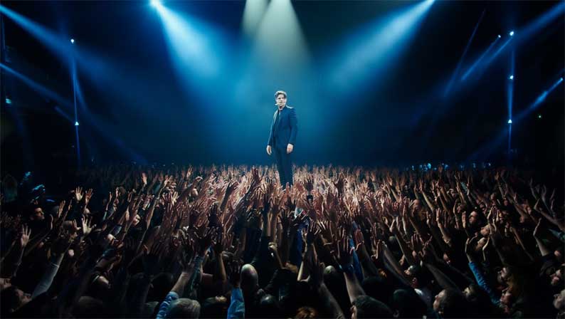 Au centre, Pierre Niney incarne Mathieu Vasseur, Matt, coach star, suivi, adulé, célébré, une figure de notre temps, à la fois prophète pop et entrepreneur de l’âme.