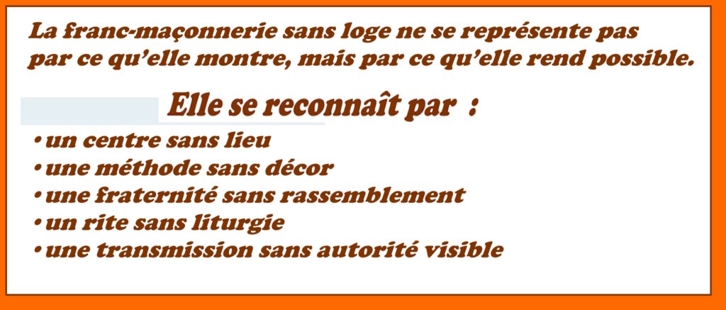 La question d’une pratique maçonnique sans loge touche au cœur même de ce qu’est la maçonnerie : est-elle d’abord une institution, ou une voie initiatique ?
