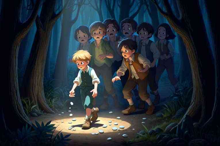 Au lieu de se lamenter, il réagit et cherche une solution qui va lui permettre de contrecarrer le projet des parents, et lui faire reconnaître le chemin du retour. Il ne trouve rien de mieux que de petits cailloux blancs !!