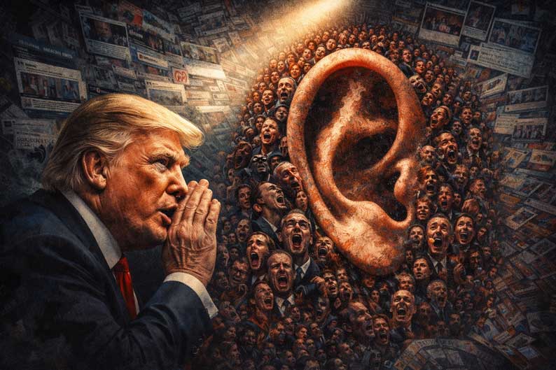 L’attention devient ressource rare. La foule est traversée par l’abondance d’informations, et cette abondance provoque un paradoxe, la saturation finit par épuiser la capacité de trier, de hiérarchiser, de relier. Alain Bauer mobilise, dans cette perspective, la notion de goulot d’étranglement cognitif, cette limitation structurelle de ce que l’esprit peut traiter, de ce que la mémoire peut garder, de ce que la conscience peut relier. Donald Trump transforme cette contrainte en arme. Il ne cherche pas à rendre le réel plus intelligible, il le rend plus encombré, puis il se propose comme la seule voix qui tranche dans l’encombrement.
