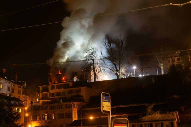 L’alerte a été donnée vers 1 heure du matin, et les services de secours de Schutz & Rettung Zürich (SRZ) sont arrivés sur place aux alentours de 1 h 15, pour découvrir le grenier du bâtiment déjà entièrement embrasé. Les pompiers, dirigés par le chef des opérations Jan Bauke, ont combattu les flammes depuis plusieurs côtés, empêchant ainsi la propagation à d’autres parties de l’édifice et aux structures voisines. Aucune victime n’a été déplorée, mais les dégâts sont qualifiés de « considérables » par les autorités, avec un risque d’effondrement du bâtiment qui empêche actuellement tout accès intérieur pour les équipes d’intervention. Une paroi s’est inclinée de six centimètres vers l’intérieur, et les pompiers utilisent des engins spéciaux, comme des pinces mécaniques, pour alléger la toiture et retirer les installations techniques sans entrer dans la structure instable.