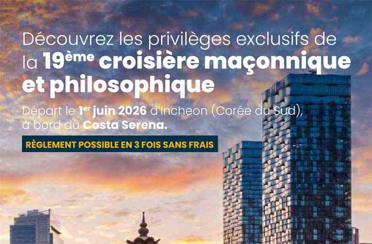 Réservez la 19e croisière maçonnique. Départ le 1/06/26 : Corée du Sud, Japon et Chine