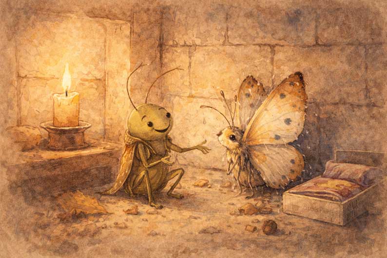Se cacher n’est pas se nier. « Vivons caché », lu maçonniquement, signifie : ne pas faire de l’appartenance un ornement, un argument d’autorité, un titre de domination, un capital social. Refuser que l’ego s’empare du signe. Refuser que la visibilité serve d’aliment au paraître. Le grillon n’est pas honteux : il est libre. Il choisit une lumière qui n’attire pas les mains prédatrices. Il choisit la paix d’un centre plutôt que le vacarme d’une vitrine.