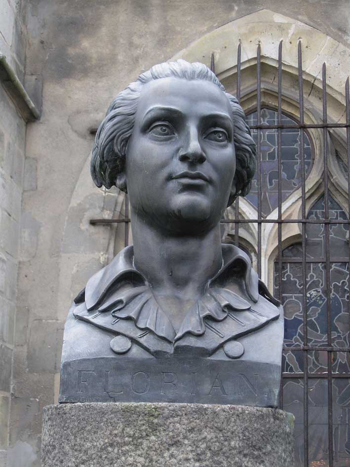 Jean-Pierre Claris de Florian, né le 6 mars 1755 à Sauve et mort le 27 fructidor an II (généralement donné comme le 13 septembre 1794) à Sceaux, est un dramaturge, romancier, poète et fabuliste français. Il appartient à cette fin de XVIIIᵉ siècle où l’on peut encore croire à la vertu civilisatrice des lettres, tout en pressentant déjà que la société de l’esprit est une société du regard : salons, réputation, brillance mondaine, art de plaire puis, brusquement, l’Histoire qui se raidit et transforme l’exposition en péril.