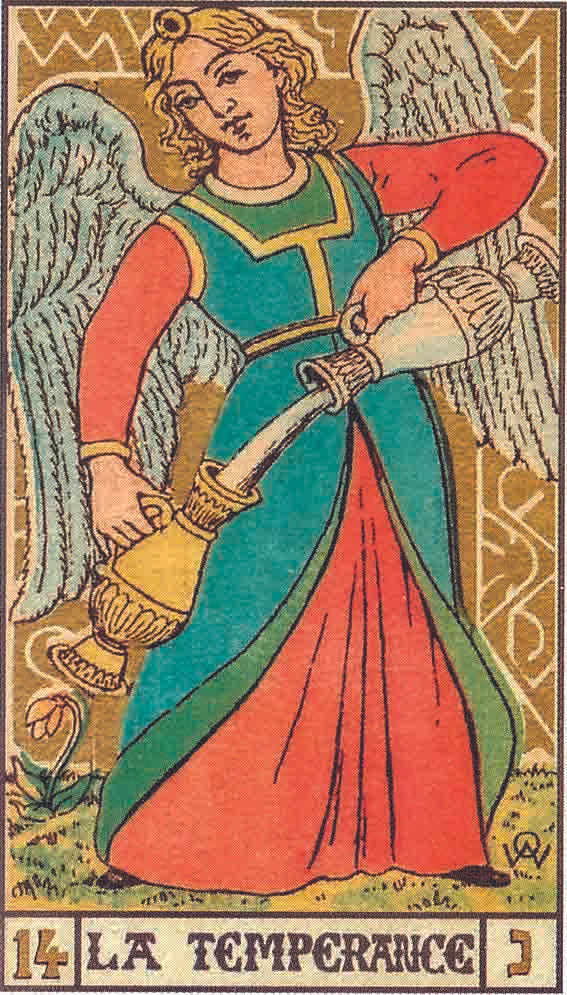 Ainsi nous quittons le monde statique de l’attente pour entrer dans le monde dynamique de la métamorphose. Le Pendu a renversé la vision ; l’Arcane XIII retourne la terre. C’est le premier pas d’une reconstruction alchimique qui nous mènera vers Tempérance, Le Diable et La Maison Dieu. Vous avez laissé derrière vous vos vieilles peaux. Le sol est nettoyé. Tout est désormais prêt pour que l’Ange de Tempérance vienne guérir les blessures de cette naissance.