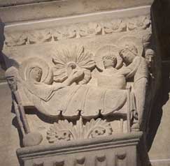 Si nous restons là, nous serons à notre tour happés, comme lui, par la matérialité de notre existence. Il nous faut donc poursuivre, et nous voici désormais devant le chapiteau suivant : celui de la Nativité.