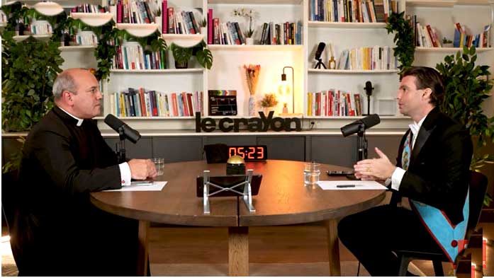 - En face, un franc-maçon, pardon « LE » franc-maçon Pierrick P., et se présentant comme catholique, décrit comme « initié depuis 12 ans » et dans une posture de vulgarisation, mais dont l’identité est souvent laissée floue selon les reprises et extraits.