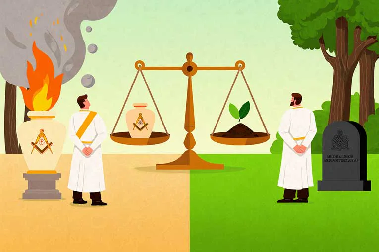 Duel entre crémation et inhumation chez les Francs-maçons… pour quelle empreinte carbone ?