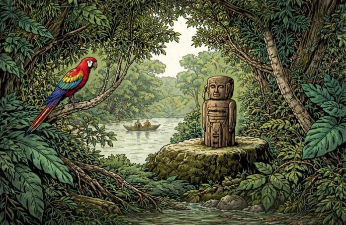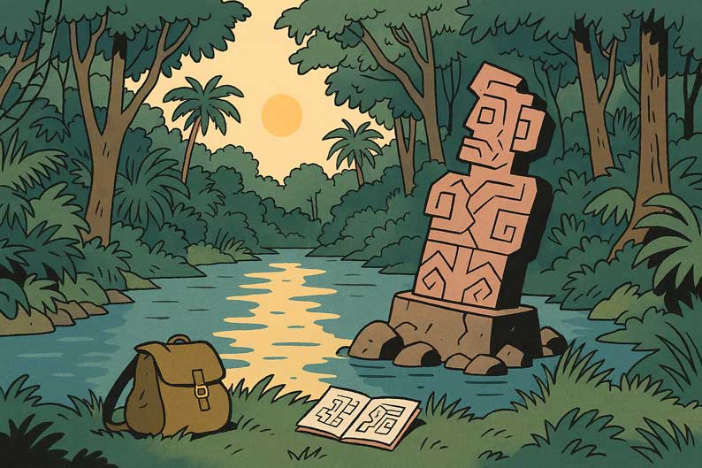 La statue, pourtant, n’est pas seulement un symbole de vol. Elle est un réceptacle. L’album joue avec cette idée d’un secret contenu, d’une richesse dissimulée, d’une lumière enfermée dans une matière pauvre. Qu’il s’agisse d’un diamant caché, d’un indice dissimulé, d’une vérité enfouie, nous sommes renvoyés à une intuition hermétique. Le trésor n’est pas toujours là où brille l’or, il peut être scellé au cœur même de ce que les puissants méprisent. Dans le regard colonial qui traverse l’époque, le fétiche est pris pour une curiosité, un bibelot. Or l’album renverse subtilement la hiérarchie. Ce que les Occidentaux croient posséder les possède à son tour. Ce qu’ils croient réduire à un objet commande leur convoitise, oriente leurs crimes, aimante leurs mensonges. La matière muette devient le centre d’un labyrinthe moral.