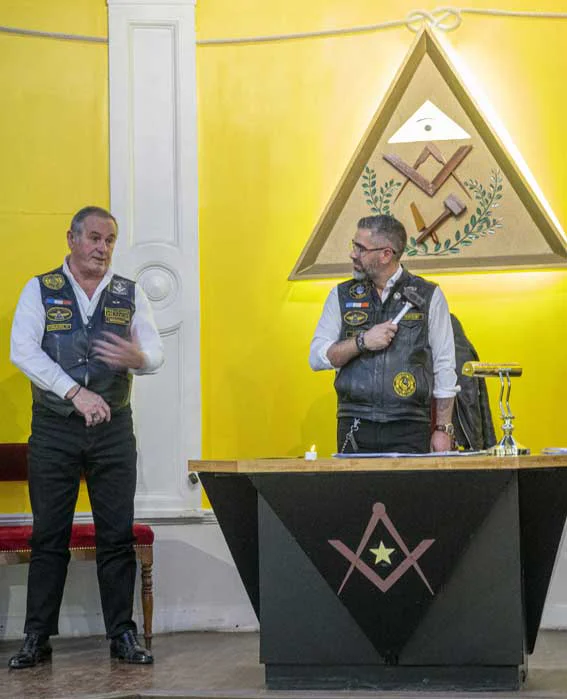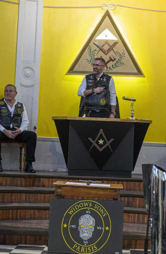 - Le Président notre frère Juice dit le Prez, c’est le chef d’orchestre du chapitre, le capitaine du navire. Il anime les réunions, tranche les débats, et veille à ce que tout le monde roule dans la même direction — même si parfois, ça ressemble à un troupeau en Harley. Il incarne l’esprit des Parisis, avec charisme, sagesse… et une bonne dose de patience. Parce que gérer une bande de motards francs-maçons, ce n’est pas gagné d’avance.
