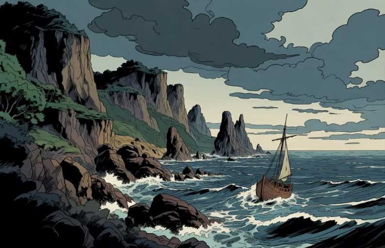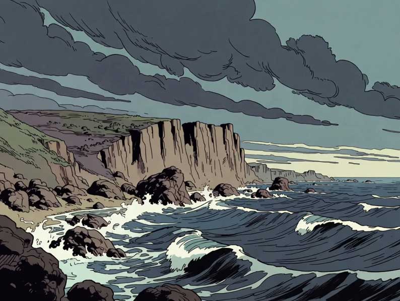 Il ne l’est pas. Hergé compose un monde où la nature demeure un interlocuteur moral. Les falaises, notamment, imposent une verticalité brusque, une frontière physique qui rappelle les limites. Là, le corps se mesure au vide. Là, la décision devient concrète, car un pas de trop a des conséquences. Dans ces scènes, nous percevons une pédagogie du risque. Le récit rappelle que le courage n’est pas une posture héroïque, il est une manière de tenir son axe quand le sol se dérobe, une manière de continuer à chercher quand les forces adverses nous entourent, une manière de refuser la facilité du renoncement.