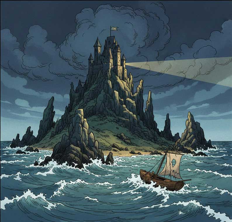 Le château sur l’île, quant à lui, agit comme une condensation imaginale