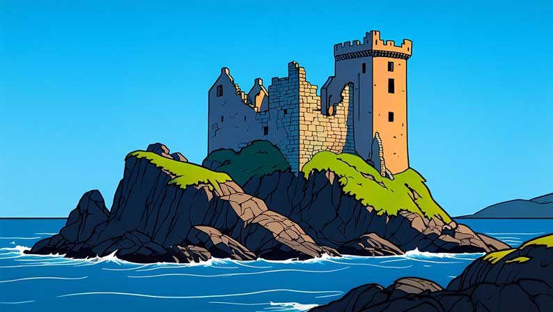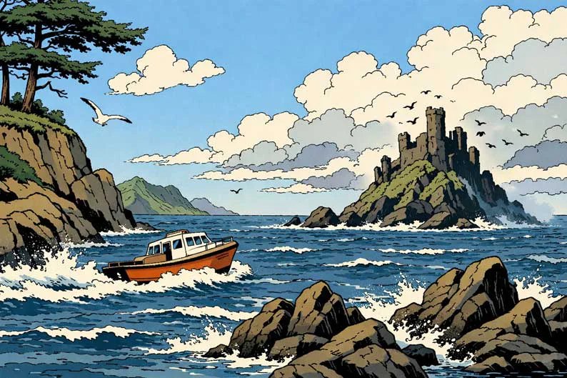 Ce que nous éprouvons ici tient à cette seconde famille, même si la surface demeure celle d’un récit haletant, très concret, nerveux, accroché à des routes, à des rails, à des moteurs, à des visages qui surgissent puis s’effacent. La mer du premier regard, l’îlot battu par les vents, la masse du château posée sur la roche comme une pensée obstinée, tout cela ne décrit pas seulement un décor, tout cela installe une polarité. Il y a la lumière qui joue sur l’eau, il y a la silhouette sombre qui résiste, il y a ce point fixe qui aimante la course et la peur, et nous comprenons très vite que l’île noire n’est pas un simple lieu. Elle devient une figure, un creuset, une part d’ombre déposée dans le monde visible, comme si l’histoire, avant même de nommer ses périls, cherchait sa chambre secrète.