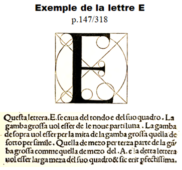 Une remarque : ne manquez pas de parcourir L’ouvrage de Fra Pacioli. Outre les solides dessinés par Léonard de Vinci, découvrez les lettrines de Fra Pacioli construites sur des rapports de formes géométriques (à partir de la p. 139/318)