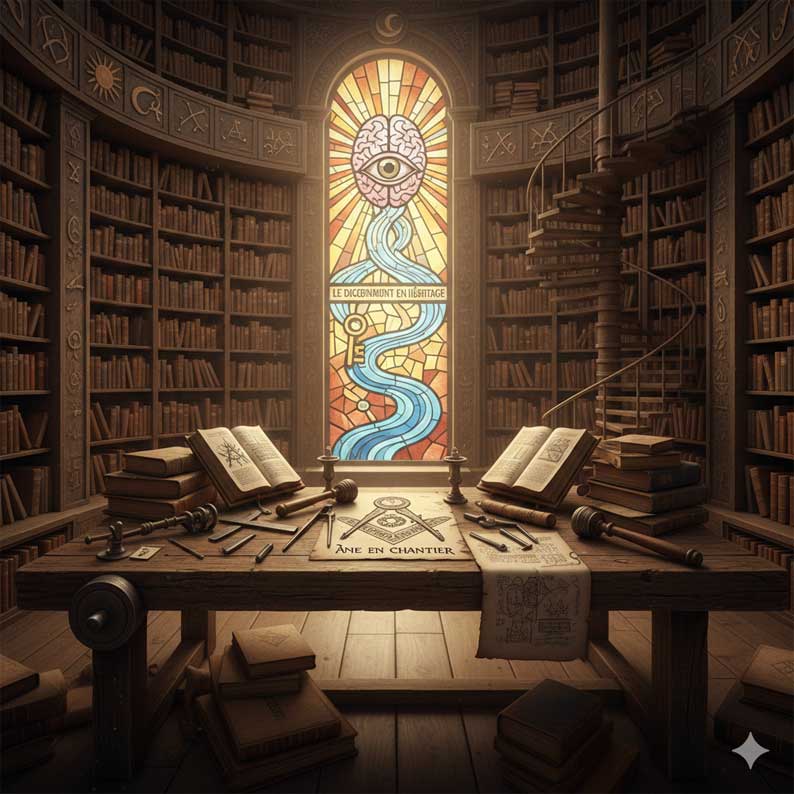 Nous ne sommes pas dans le musée des titres, nous sommes dans l’atelier des outils. L’auteur imagine un fonds officieux, non proclamé, non estampillé, qui se transmet pourtant comme une rumeur insistante, parce que certains textes reviennent, se recoupent, s’appellent, et finissent par constituer une sorte de socle partagé. Nous reconnaissons ce phénomène dans la conversation maçonnique, dans les conférences, dans les planches, dans les recommandations à demi murmurées, dans les listes que chacun se garde bien de présenter comme des listes. Le geste de Thierry Viquerat consiste à regarder ce socle en face, à le rendre visible, puis à le commenter avec assez de délicatesse pour ne pas le transformer en dogme.