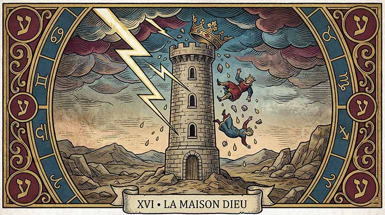 L’Arcane XVI ne vient pas simplement vous bousculer, c’est une intervention supérieure qui vous expulse de votre zone de confort pour vous forcer à respirer à nouveau. Bienvenue dans les décombres fumants de La Maison Dieu.