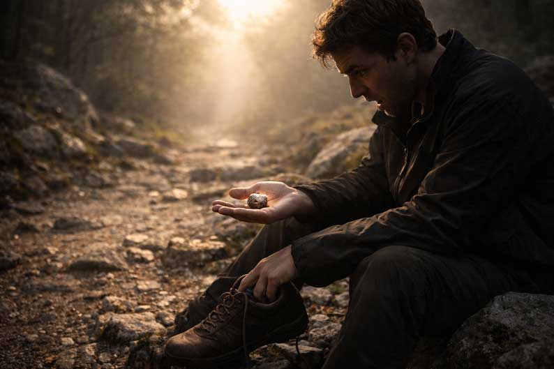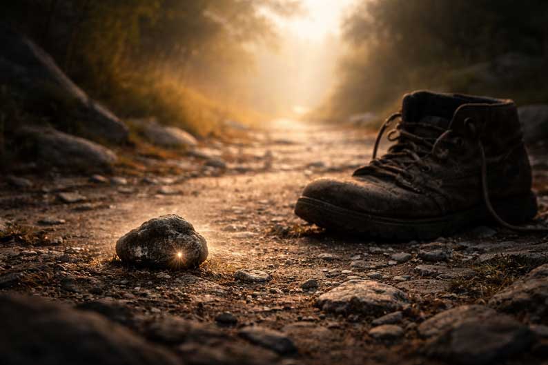 Le caillou dans la chaussure relève de cette pédagogie. Il est une pierre d’achoppement intime. Non pas celle qui fait tomber dans la destruction, mais celle qui interrompt l’illusion d’une marche triomphante. Il rappelle que l’on ne chemine pas vers la lumière en glissant sur un sol verni. On y avance avec des reprises, des frottements, des reprises encore.
