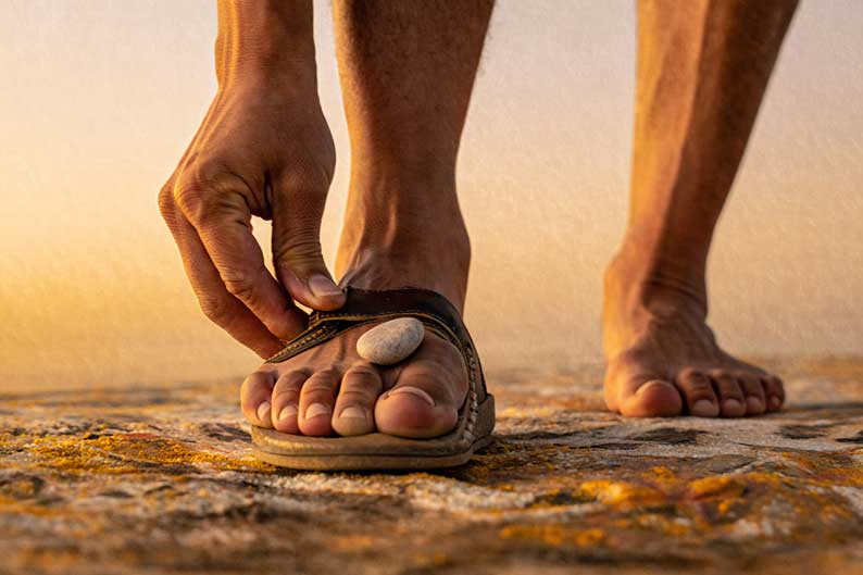 Voilà sans doute pourquoi cette image parle si profondément à l’expérience maçonnique. Nous travaillons avec la pierre. Nous savons qu’elle résiste avant de répondre. Nous savons qu’elle blesse parfois la main qui veut la polir. Nous savons surtout qu’aucune pierre ne devient signifiante sans un travail de mise en place. Une pierre errante gêne. Une pierre ajustée construit. Le caillou dans la chaussure peut donc être compris comme une pierre sans place apparente, mais non sans sens. Il dérange parce que notre marche n’a pas encore appris à l’intégrer.